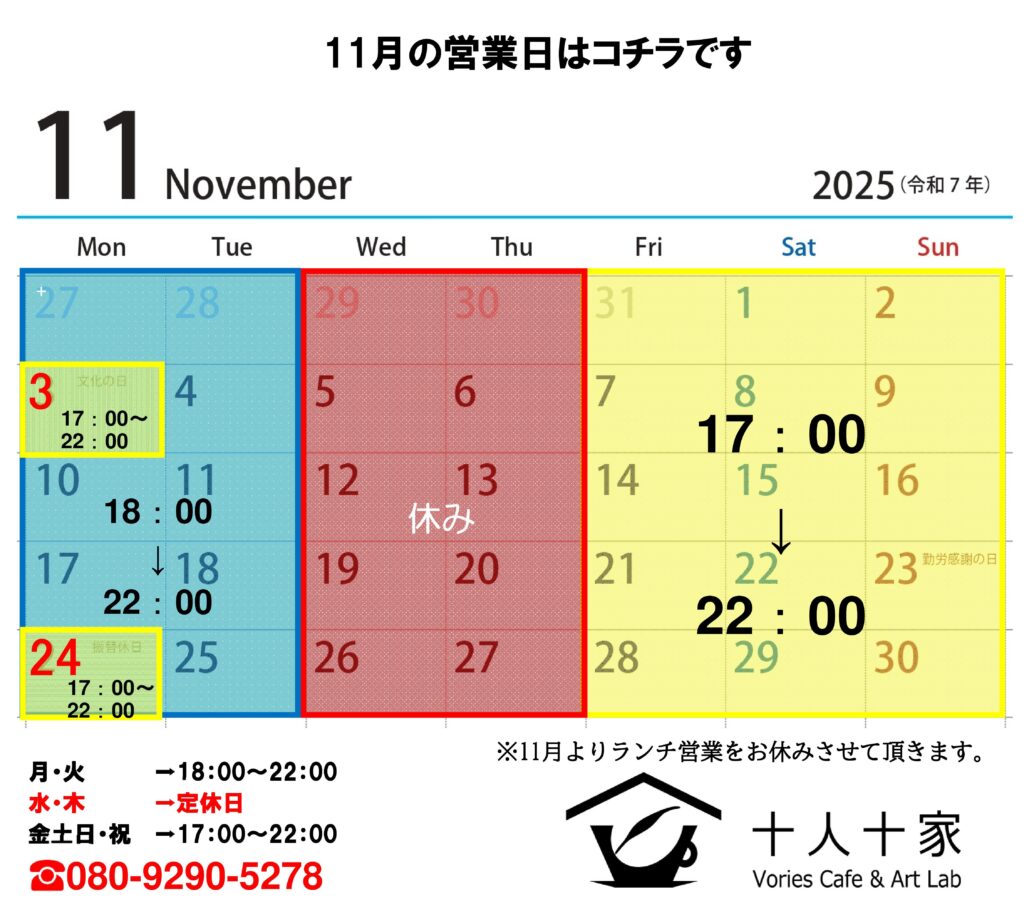 11月の営業日はこちらです。
